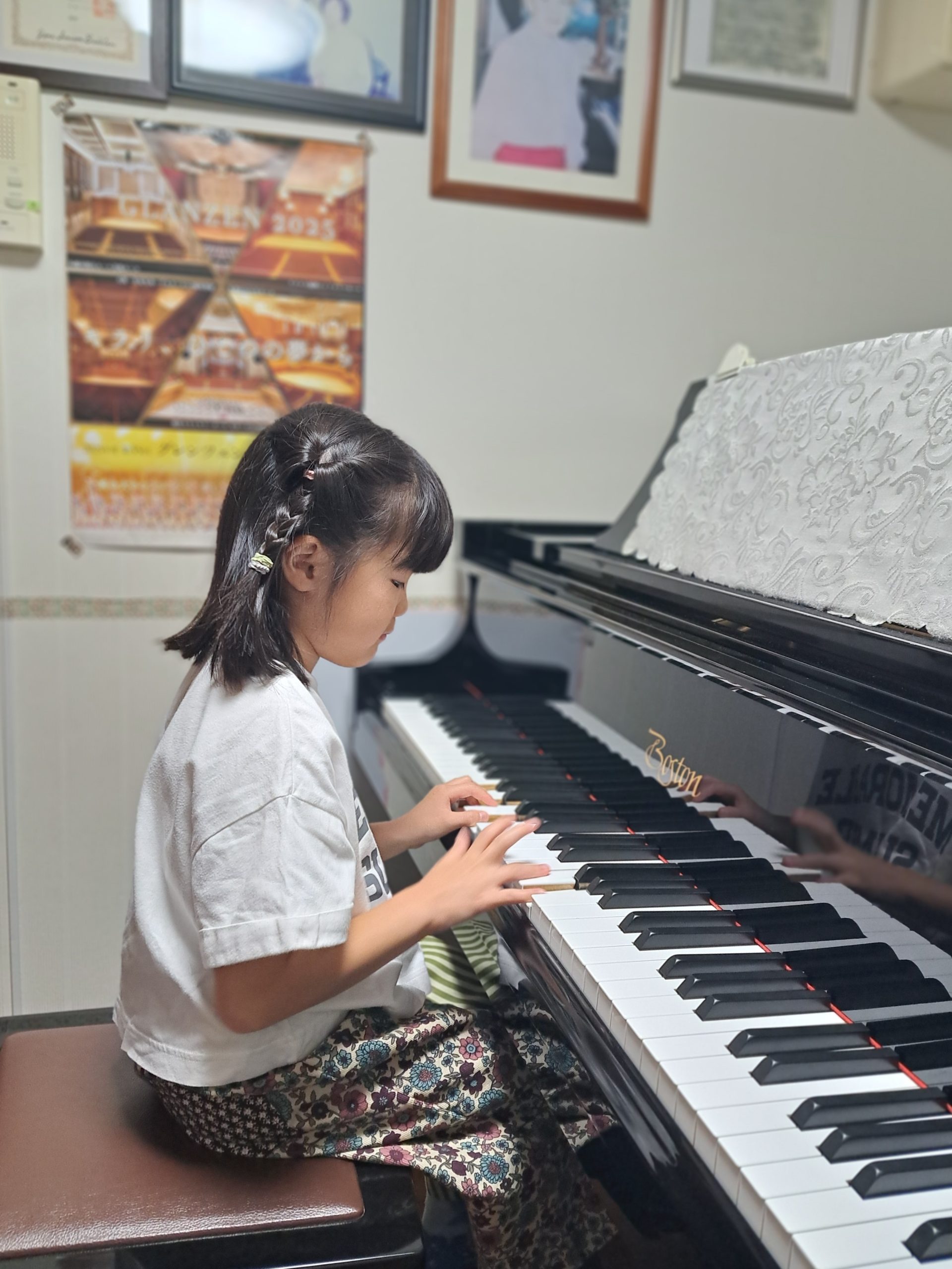 伊藤ピアノレッスンスタジオでは、ブルグミュラー『25の練習』に入るまでの生徒さんが使用しているメイン・テキストが終了し、次のレベルに進むタイミング毎に【終了コンサート】と銘打ったミニコンサートを保護者の方をお招きしレッスン室で行っています。曲目は終了予定のテキストから3曲を生徒さん本人に選曲してもらっています。(アンコールでもう一曲プラスになることも!?)